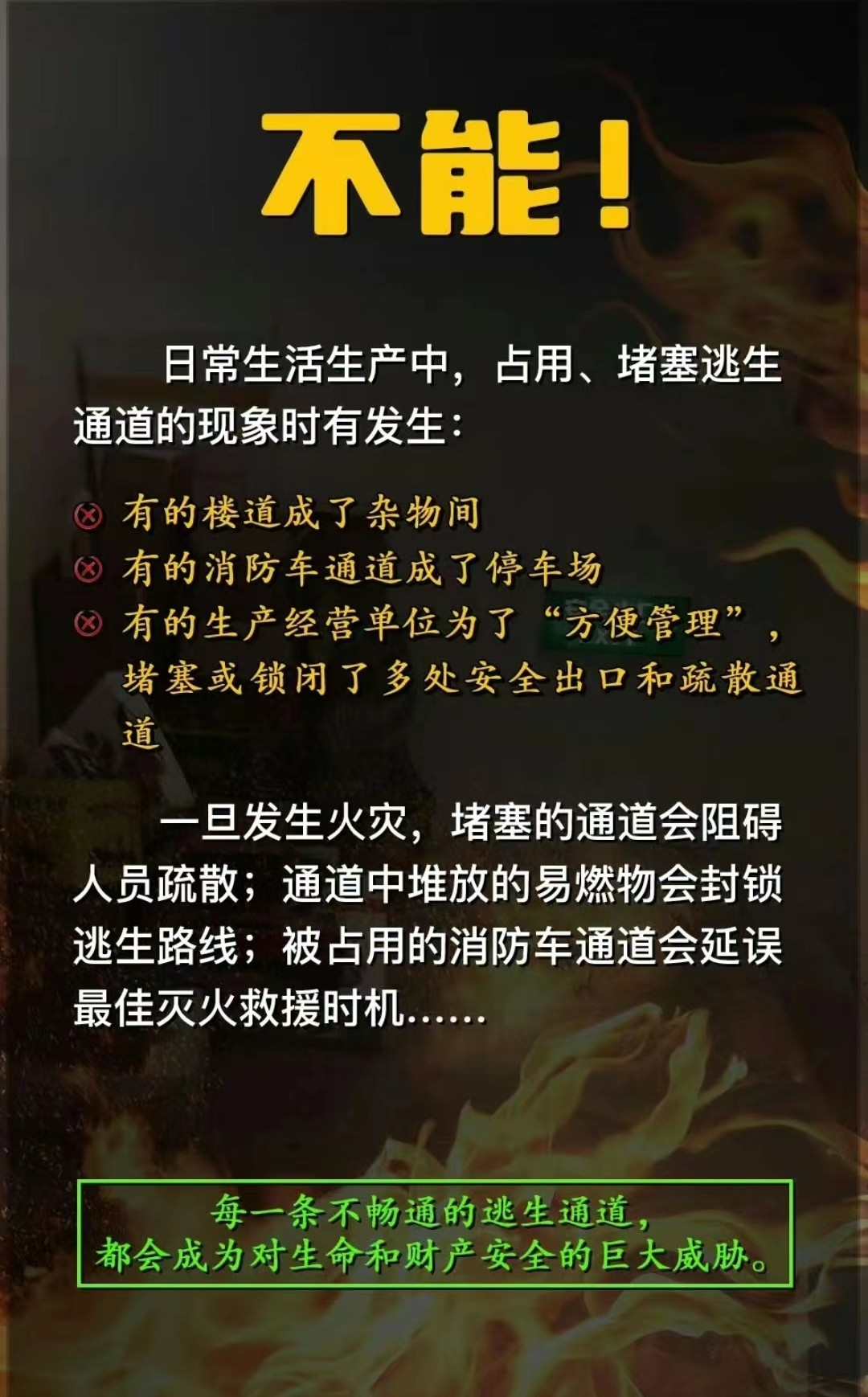 為深刻吸取近年來(lái)火災(zāi)事故教訓(xùn),堅(jiān)決整治占用、堵塞、封閉疏散通道、安全出口和消防車通道。
